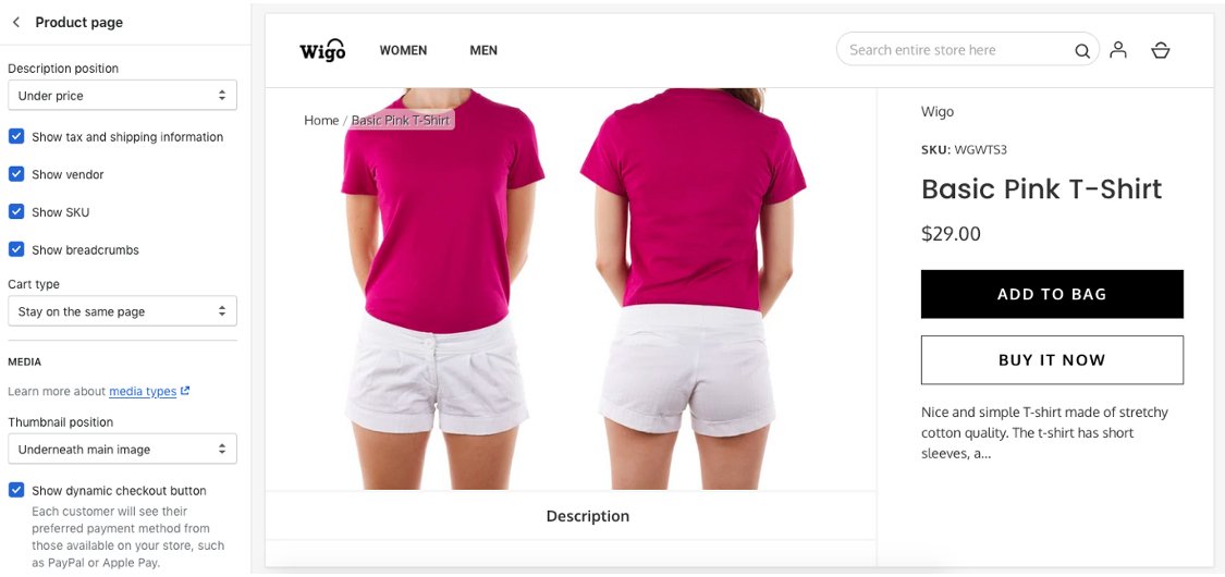 The Product section is the main customizable section for product pages. You can customize this section using the following options: