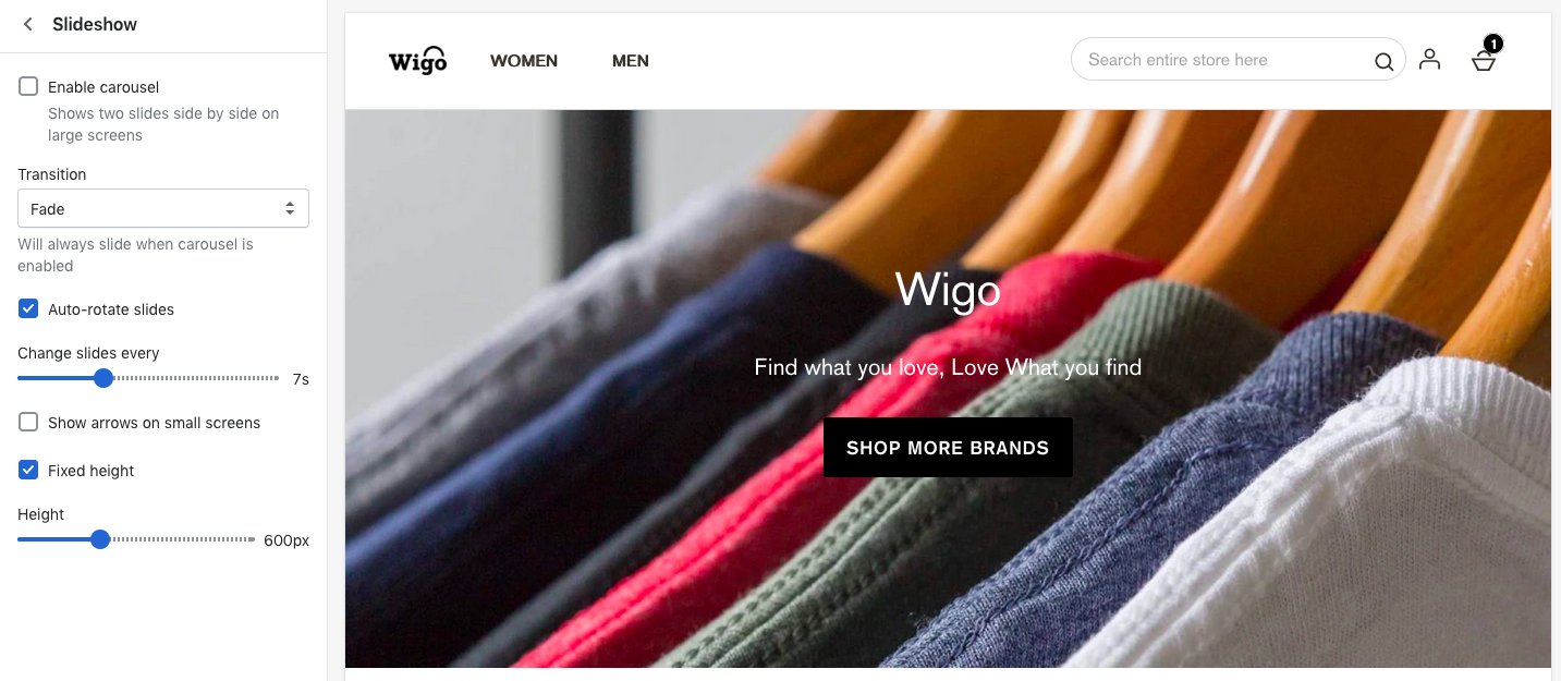 Because the size and shape of the slideshow depends on the size and shape of the customer's device, your slideshow images will be cropped on some screens. Try to use images that have a focal point in the middle so that the important part of each image is always visible.